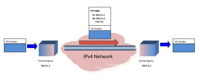 The objective of attempting to operate in and end-to-end IPv6-only mode over a largely IPv4 substrate network lead to the development of a number of approaches to IPv6 transition that relied on tunnelling techniques, where IPv6 packets are encapsulated in an IPv4 packet wrapper, allowing these IPv6 "islands" to treat the IPv4 network as a form of transmission media, or a non-broadcast multicast network. This has lead the development of the general technique of carrying IPv6 packets in IPv4 by treating IPv6 as an IPv4 protocol, namely protocol 41.