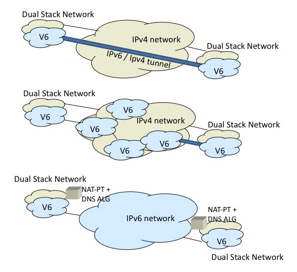 The general characterisation of this approach to this form of Dual Stack transition was to allow the initial "islands" of IPv6 adoption to connect to each other via these tunnels, essentially creating an IPv6 connected network from the outset. As more of the infrastructure adopted the same form of Dual Stack support these "islands" would start to directly interconnect, making the "islands" larger and the tunnelled "gaps" shorter. As these gaps shrink to the point of general Dual Stack support it may be an option to then tunnel the remaining IPv4 traffic over IPv6, but perhaps that’s getting well ahead of ourselves right now.