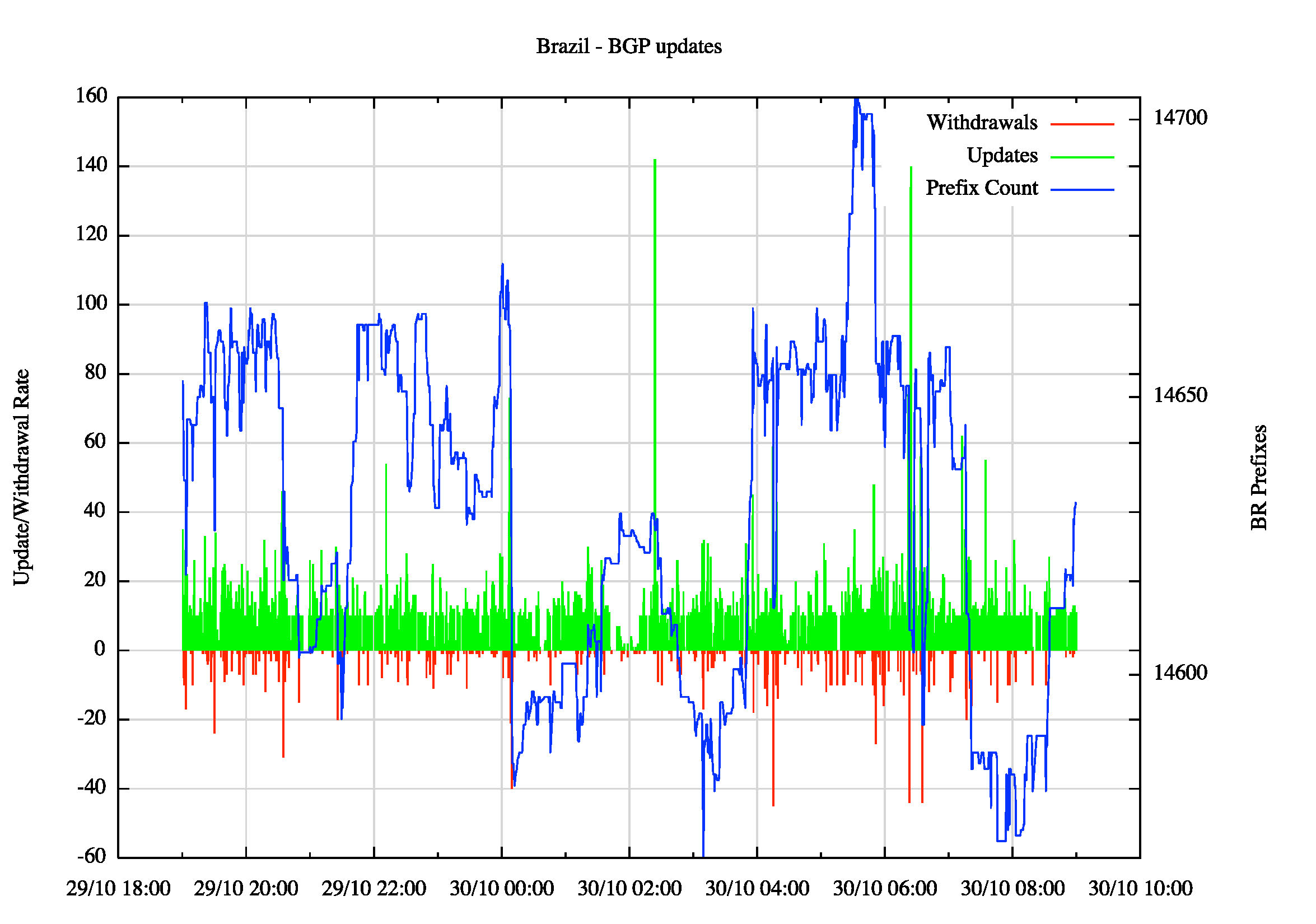 In this 14 hour period we observed some 159,385 "prefix updates".