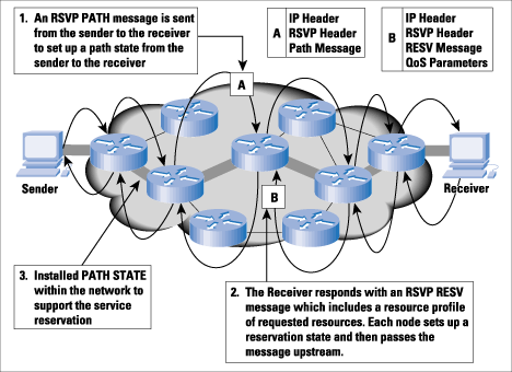 The initial approach to QoS was that of the Integrated Services architecture. This approach focuses on the application as the trigger for QoS. Here, the application first signals its service requirements to the network in the form of a reservation, and the network responds to this request. The application proceeds only if the network has indicated that it is able to carry the additional load at the requested service level by committing to the reservation. The reservation remains in force until the application explicitly requests termination of the reservation, or the network signals to the application that it is unable to continue the reservation. The essential feature of this model is the "all-or-nothing" nature of the service model. Either the network commits to the reservation, in which case the application does not have to monitor the level of network response to the service, or the network indicates that it cannot meet the reservation. This approach imposes per-application state within the network, and for large-scale networks, such as the global Internet itself, this approach alone does not appear to be viable (see Figure 1).